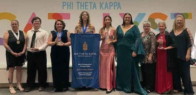 Horry-Georgetown Technical College (HGTC) Alpha Nu Sigma Chapter Members and Advisors received International Awards at the Phi Theta Kappa Catalyst April 20-23, 2023 in Columbus, Ohio. The HGTC Alpha Nu Sigma Chapter received the Most Distinguished Chapter award as the top chapter out of more than 1250 chapters in the world.