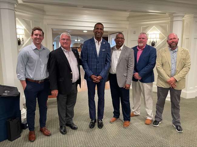 Photo 2: (left to right) Chip Fallaw, Apprenticeship Carolina; Dr. Jordan Booth, USGA-Green Section; Charles Granger, HGTC Chair and Professor of Golf and Sports Turf Management; Jim Huntoon, HGTC Associate Professor of Golf and Sports Turf Management; Brandon Haselden, HGTC Assistant Vice President and Dean; Vincent Myers, HGTC Workforce Development Manager; Dr. Carson Letot, USGA-GAP Program; Dr. Matt Pringle, USGA-Green Section